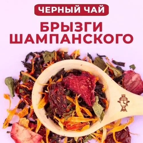 "Брызги шампанского" — настоящий праздник для ценителей изысканных вкусов! Это чайный купаж, созданный на основе качественного цейлонского черного чая, где пузырьки игристого вина будто весело танцуют в бокалах, придавая каждому глотку нотку радости и свежести.