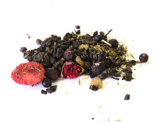 микс зелёного и древесного чая, неповторимую композицию которых дополняет аромат клубники, банана, корицы, душицы и ягод?