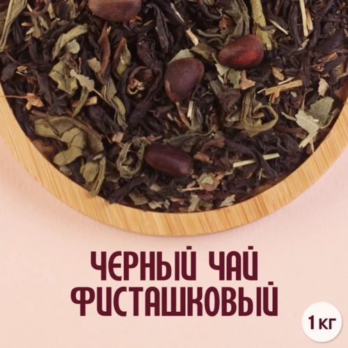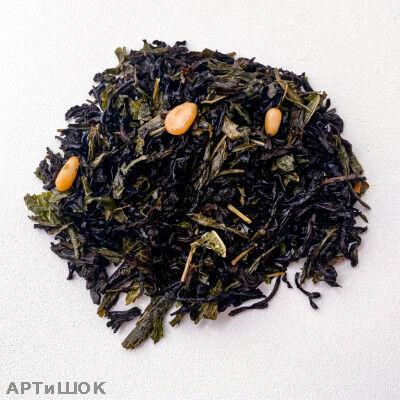 Купаж черного чая, сенча, кедровый орех, смородина лист, с ароматом "Фисташка"