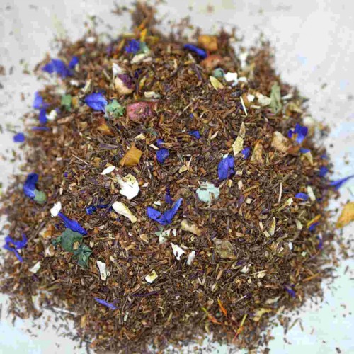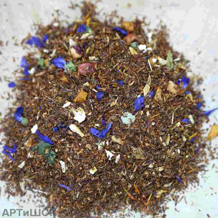 Состав: Ройбос, корка лимона, яблоко, мальва, натуральное масло "Тропический фрукт".