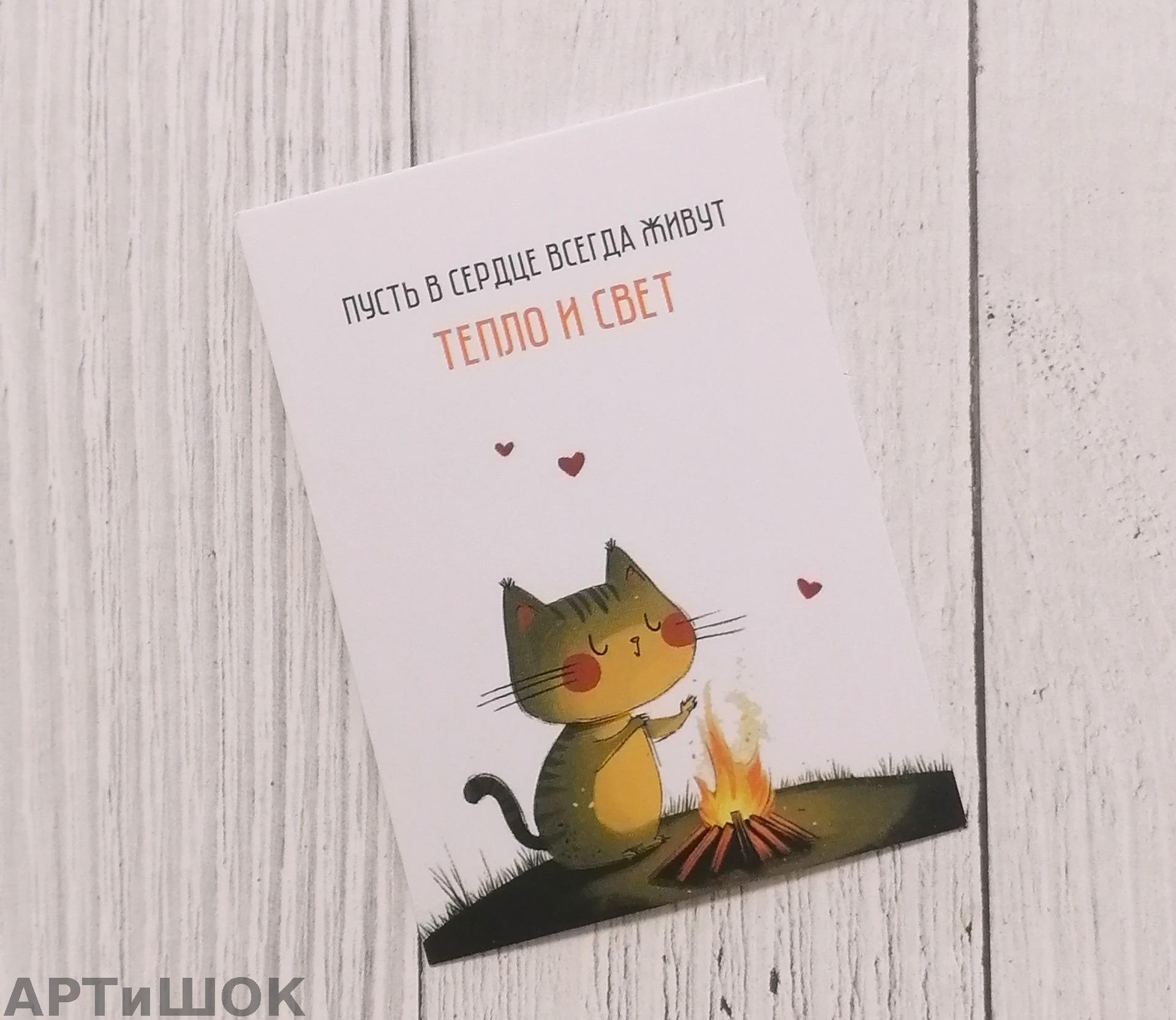 Мини открытка "Пусть в сердце всегда живут тепло и свет"